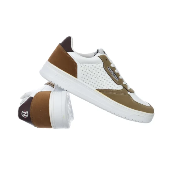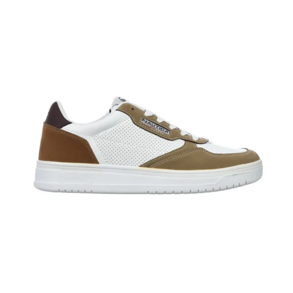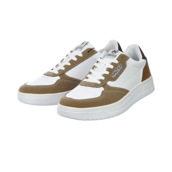 Ανδρικά sneakers Nautica Bird Lth- Sd σε λευκό απομίμηση δέρματος, με καφέ λεπτομέρειες στη φτέρνα και τη μύτη