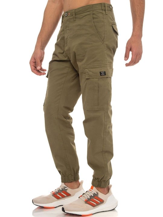 Ανδρικό παντελόνι cargo της εταιρίας Be:Nation σε χακί χρώμα με πλαϊνές τσέπες για casual εμφανίσεις και λάστιχο στους αστραγάλους.