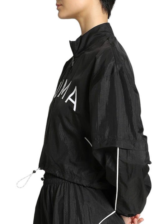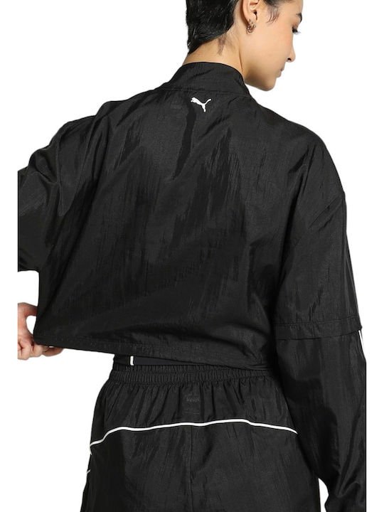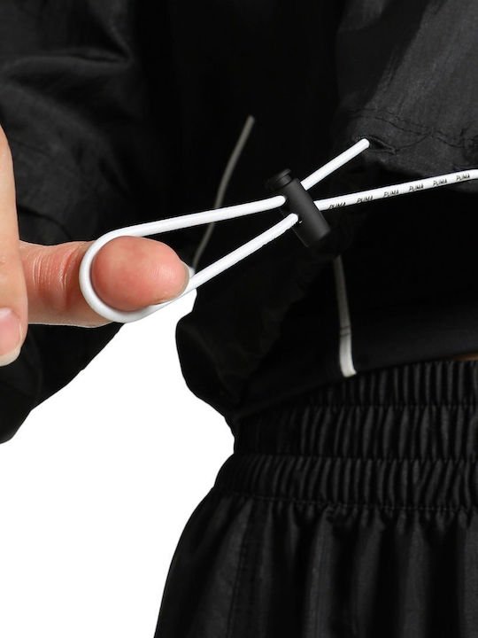 Γυναικείο μπουφάν σε μαύρο χρώμα της εταιρίας Puma. Ελαφρύ, ιδανικό για τους μεταβατικούς μήνες. Κατασκευασμένο από ειδικό υλικό που αντέχει στον αέρα.