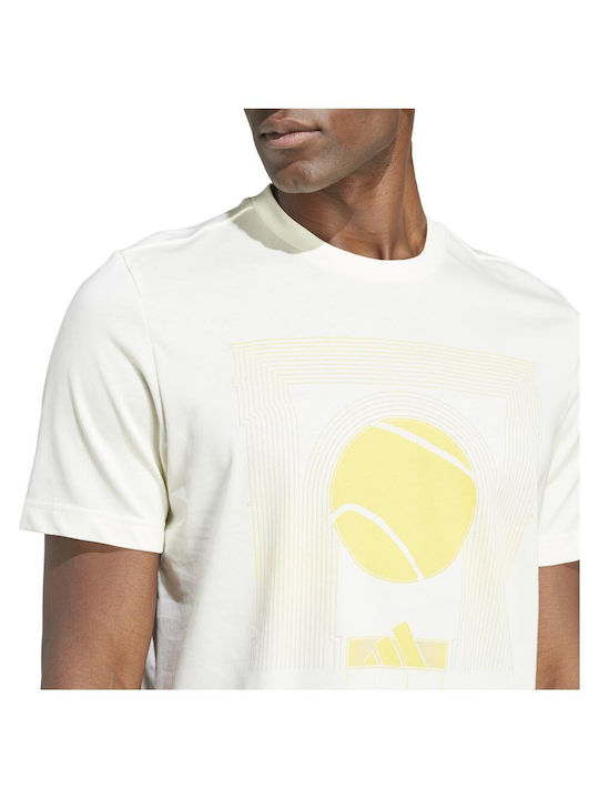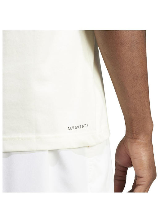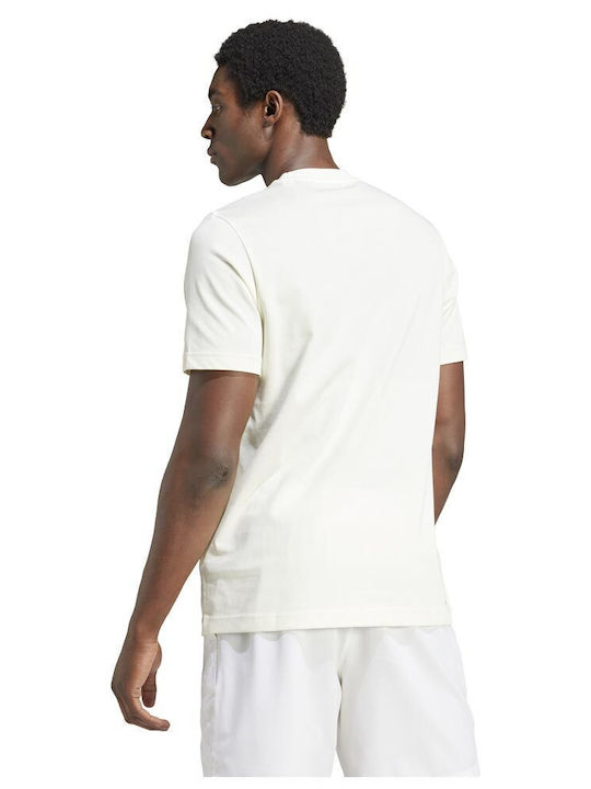 Ανδρικό T-shirt με κοντό μανίκι της εταιρίας Adidas σε ασημί χρώμα με στάμπα, ιδανικό για κάθε είδους αθλητική δραστηριότητα. Κατασκευασμένη από ύφασμα με τεχνολογία που απομακρύνει την υγρασία και τον ιδρώτα από το σώμα, προσφέροντας ανάλαφρη αίσθηση.
