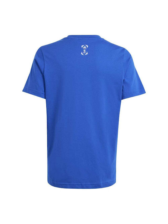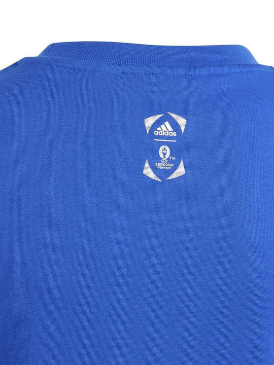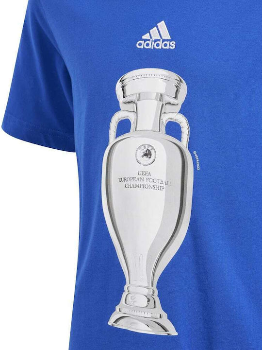 Γίνε κομμάτι της κορυφαίας διοργάνωσης. Αυτή η παιδική adidas ποδοσφαιρική μπλούζα έχει σχέδιο με κύπελλο που δείχνει την αγάπη σου για το ποδόσφαιρο, και είναι ιδανική για να βλέπεις τη δράση να εκτυλίσσεται στη Γερμανία. Το μαλακό βαμβάκι και η κλασική rib στρογγυλή λαιμόκοψη σου χαρίζουν άνεση τις καλοκαιρινές μέρες.