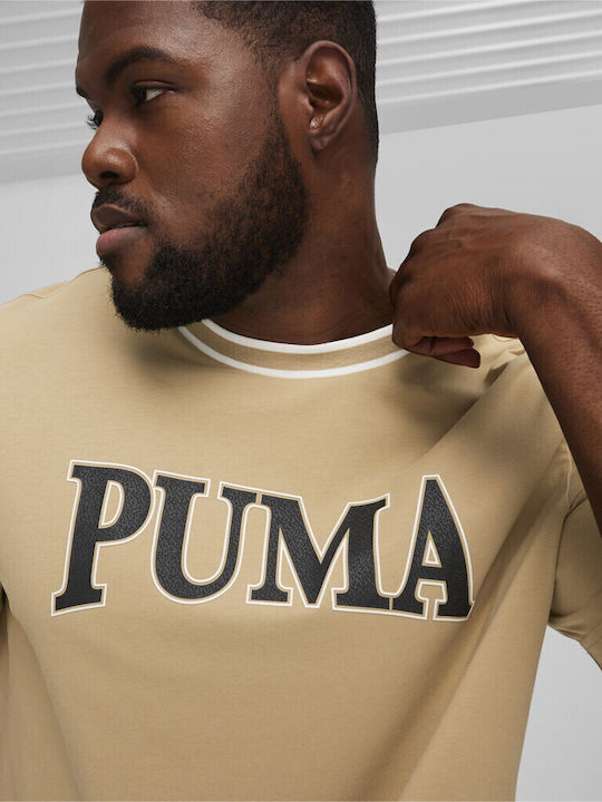 Ανδρικό T-shirt με κοντό μανίκι της εταιρίας Puma σε μπεζ χρώμα με στάμπα, για casual εμφανίσεις.
