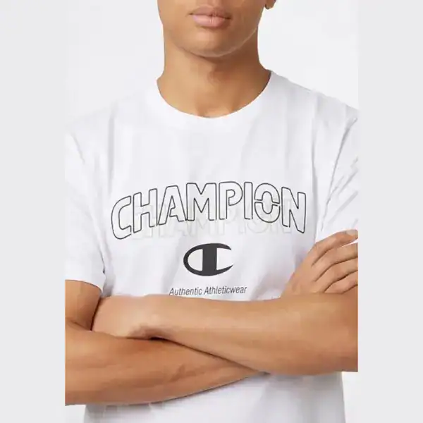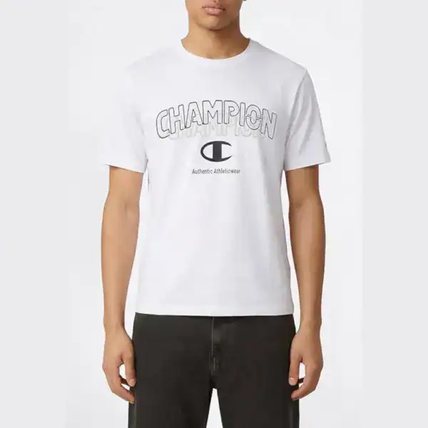Το ανδρικό t-shirt Champion σε λευκό χρώμα αποτελεί μια διαχρονική επιλογή για καθημερινό ντύσιμο. Κατασκευασμένο από απαλό βαμβακερό ύφασμα, προσφέρει άνεση και ελευθερία κινήσεων όλη τη μέρα. Ιδανικό για casual εμφανίσεις, γυμναστήριο ή καθημερινή χρήση, συνδυάζεται άψογα με jeans, φόρμες ή βερμούδες.