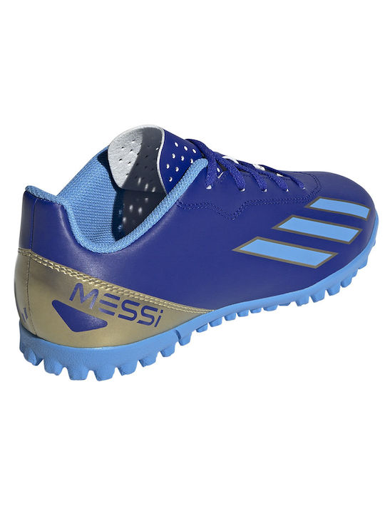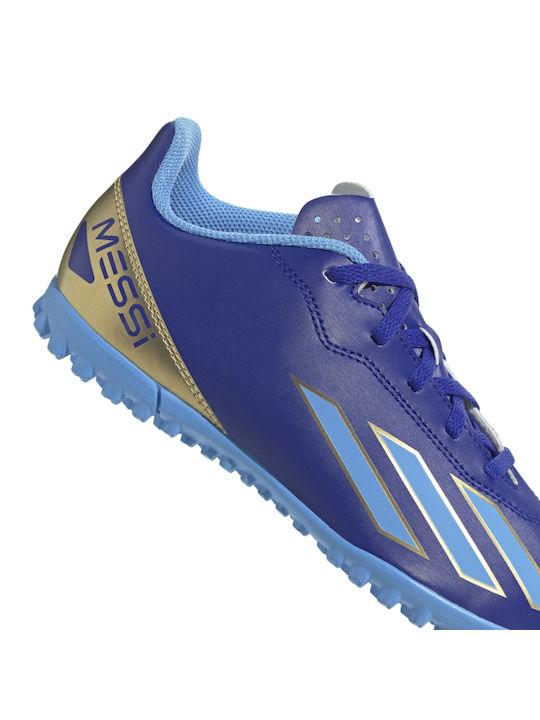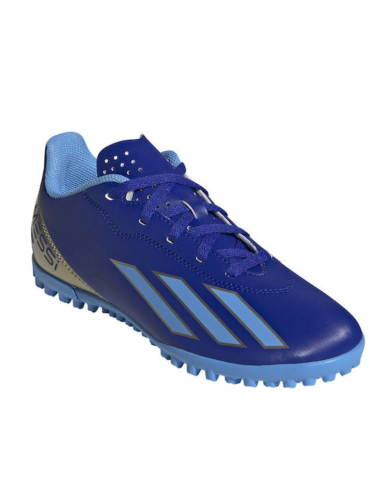 Νέα εφηβικά ποδοσφαιρικά παπούτσια Adidas X CRAZYFAST CLUB TF J MESS με σχάρες σε μπλε χρώμα.