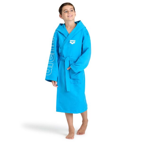 Αυτό το παιδικό μπουρνούζι από την arena θα αποτελέσει το απόλυτο αξεσουάρ των μικρών αθλητών στο κολυμβητηρίο και την παραλία.Κατασκευασμένο από μαλακό και ελαφρύ ύφασμα μικροϊνών που στεγνώνει γρήγορα.
